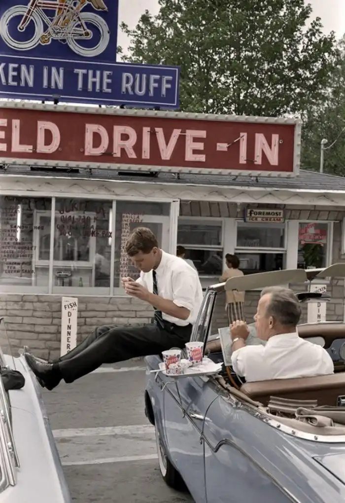 38. Роберт Кеннеди, отдыхающий от предвыборной кампании, фото раскрашено