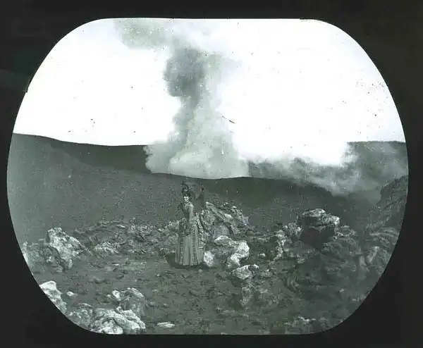 Как насчёт этой дерзкой викторианки, стоящей на краю извергающегося вулкана Везувий? Фотограф Темпест Андерсон (1846-1913).