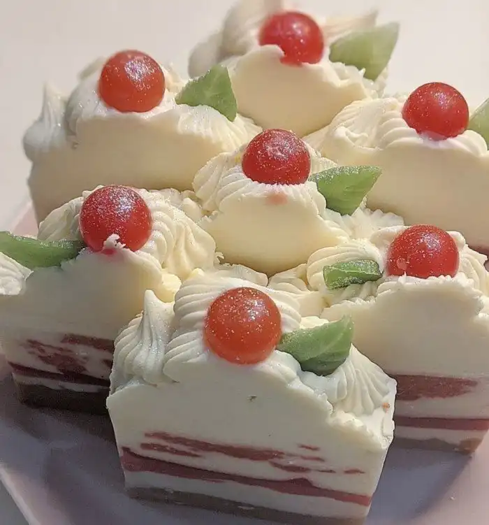 Я изготовил мыло в форме клубничного торта