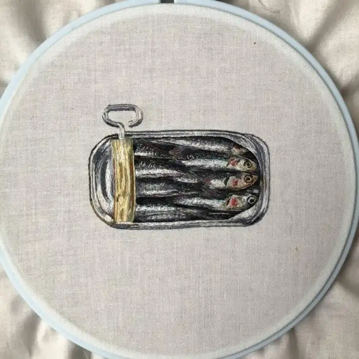 Я вышила сардины для кафе моей подруги