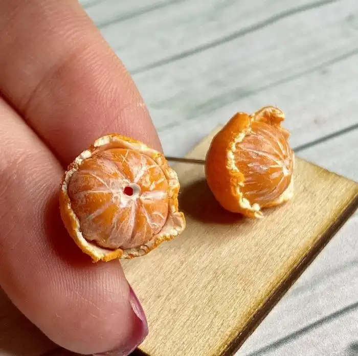 Серьги-гвоздики мандарины из полимерной глины