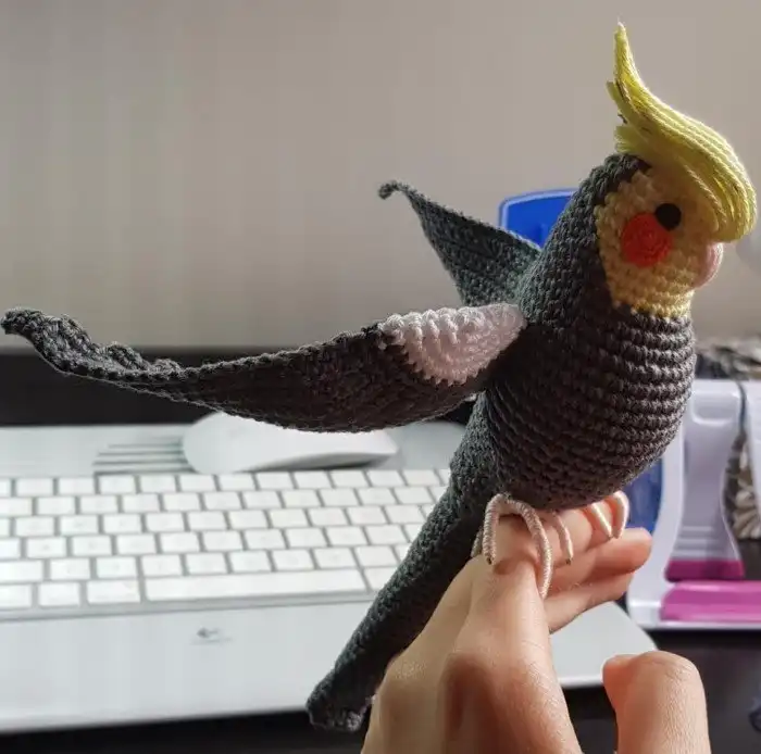 Спустя 40 часов и целую кучу хлопчатобумажных ниток моя ворона наконец готова