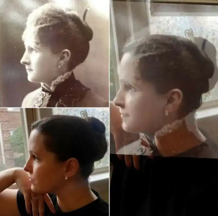 Девушка и снимок её прапрапрапрабабушки с разницей в 6 поколений