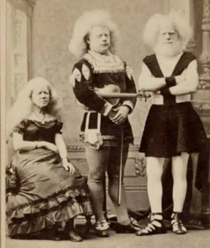 9. Семья Лукасси. Отец, мать и сын врождённые альбиносы, что в XIX столетии вызывало бурный интерес и внимание общества.