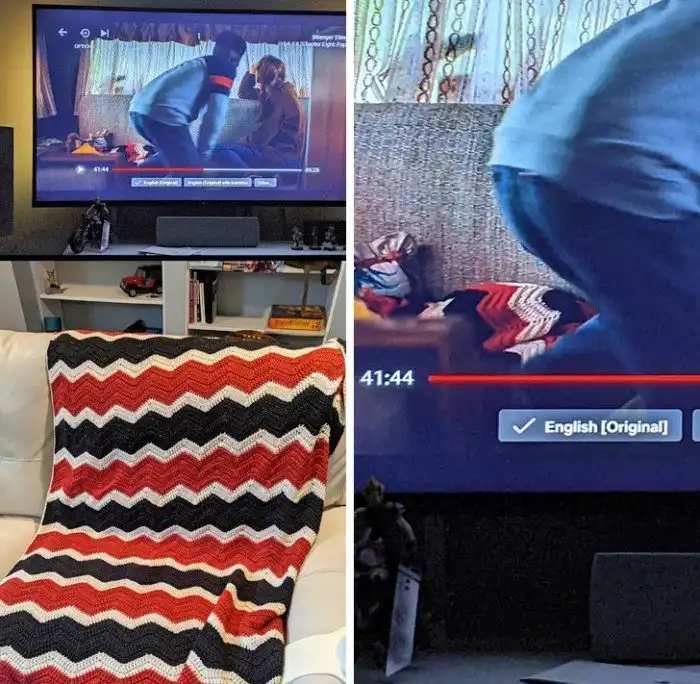6. "Смотрел «Очень странные дела» и увидел точную копию моего вязаного пледа ручной работы (подарок 10-летней давности)"