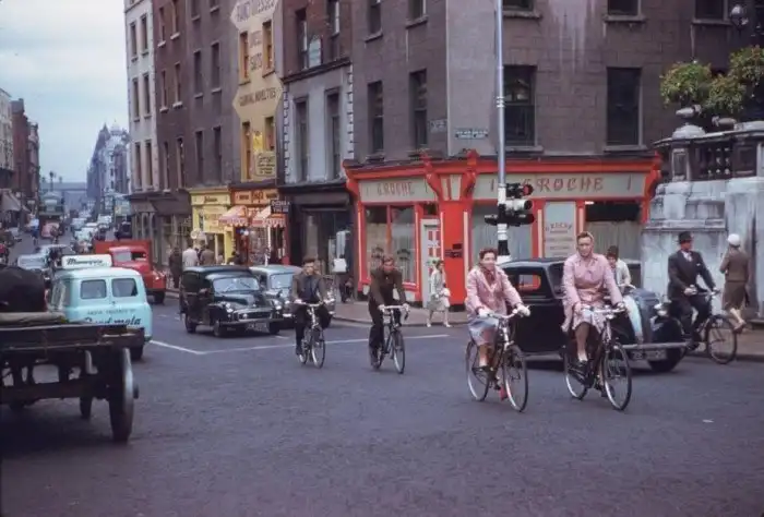 7. Дублин, велосипедисты около ратуши, 1961 год