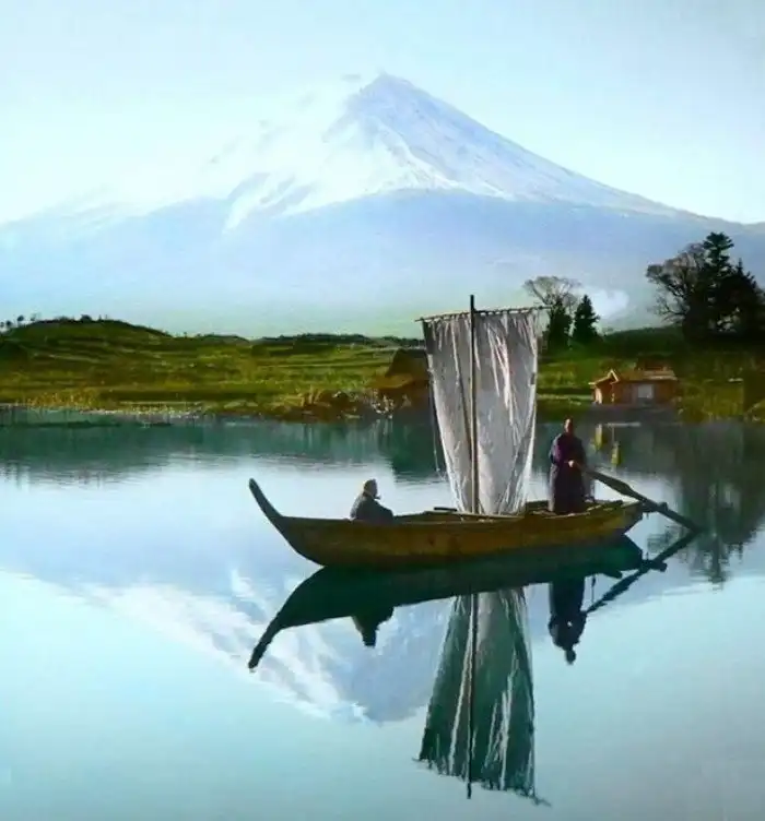 10. Безмятежность. Лодка и гора Фудзияма. Япония. Фото Т. Энами. 1895 год