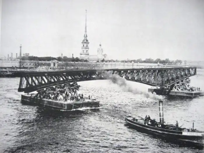 19. Строительство Троицкого моста в Петербурге 1901 год. Перевозка ферм левого крайнего пролета