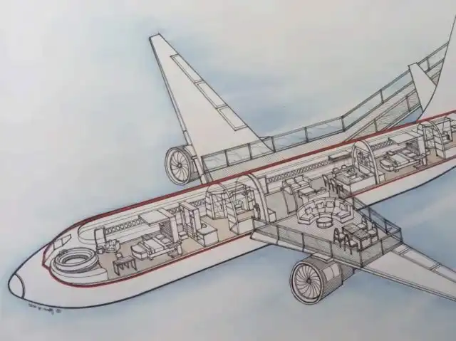 Известно, что самолет сначала разобрали на части, а после подняли на крутой утес над пляжем Ньянг-Ньянг. В фюзеляже убрали все пассажирские кресла и полки для багажа соорудили полноценные спальни. Что же стало в кабине пилота? Там теперь ванная. Есть еще и вертолетная площадка, висячие сады, бассейн с видом на Индийский океан.