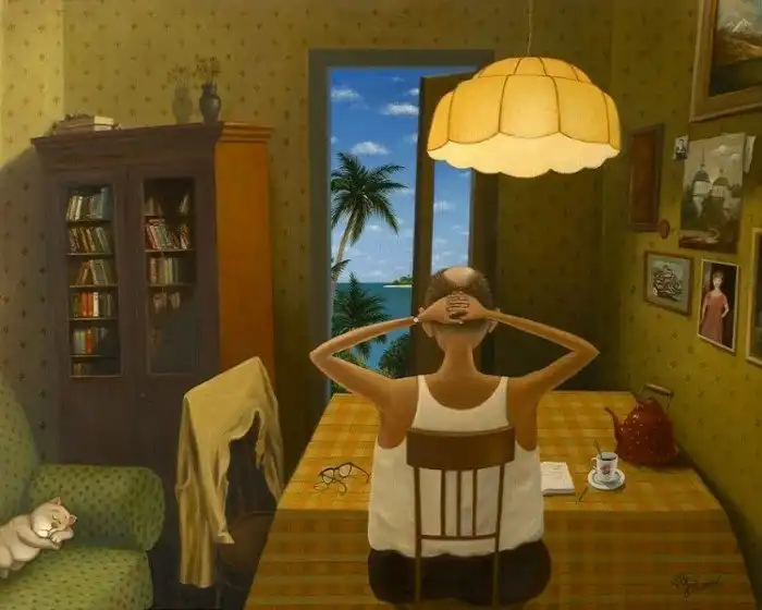 Правдивые они потому, что художник изображает только то, что помнит сам, своё детство, традиции, усвоенные с юношества, а ироничные, потому что артист приправил каждую работу долей юмора и доброты. Его полотна хочется рассматривать, ведь они искренние, тёплые и такие родные.