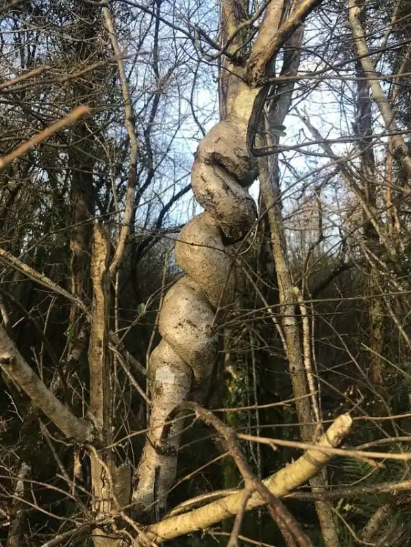 Лозы дикого винограда деформировали ствол дерева