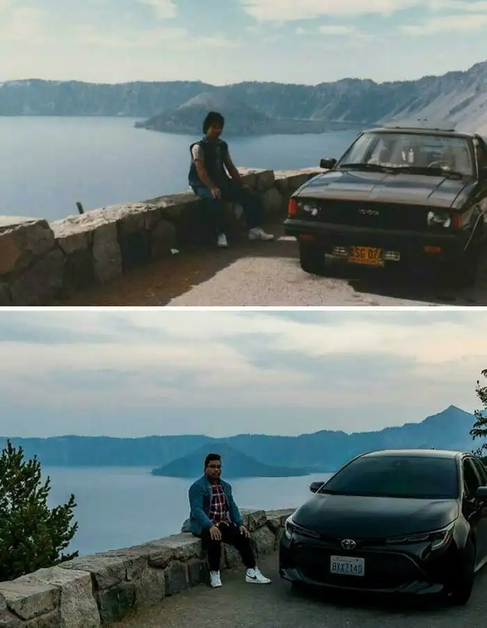 Вулканическое озеро Крейтер в 1982 году, оно же спустя 40 лет: место практически не изменилось