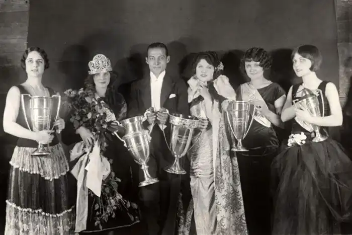 12. Американский киноактёр Рудольф Валентино с победительницами конкурса красоты. Сан-Франциско, 1923 год