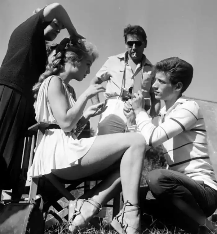 13. Милен Демонжо во время съемок фильма «Марафонский великан», 1959 год