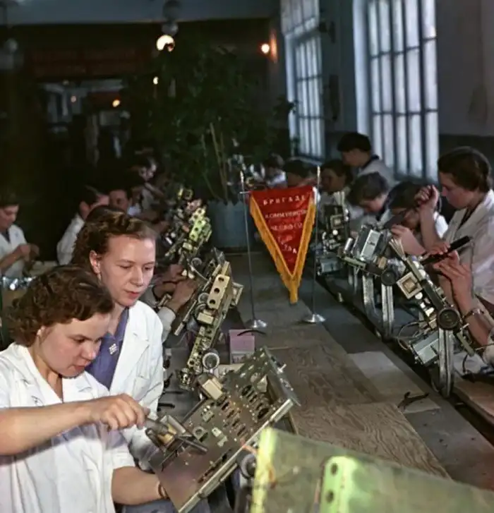 14. Воронежский завод «Электросигнал». Конвейер сборки телевизоров, 1959 год. Фото А. Гостев
