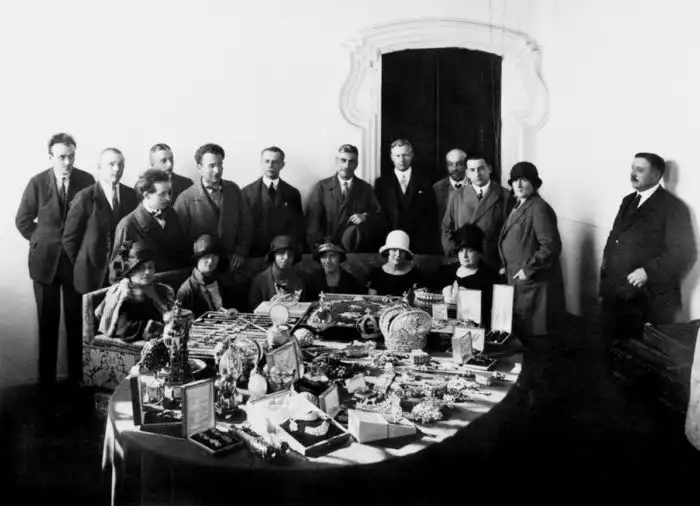 28. Осмотр драгоценностей российской императорской фамилии сотрудниками иностранных посольств и их женами в помещении Гохрана в Настасьинском переулке, с целью дальнейшей рекомендации о приобретении их правительствами своих стран. 1923 год