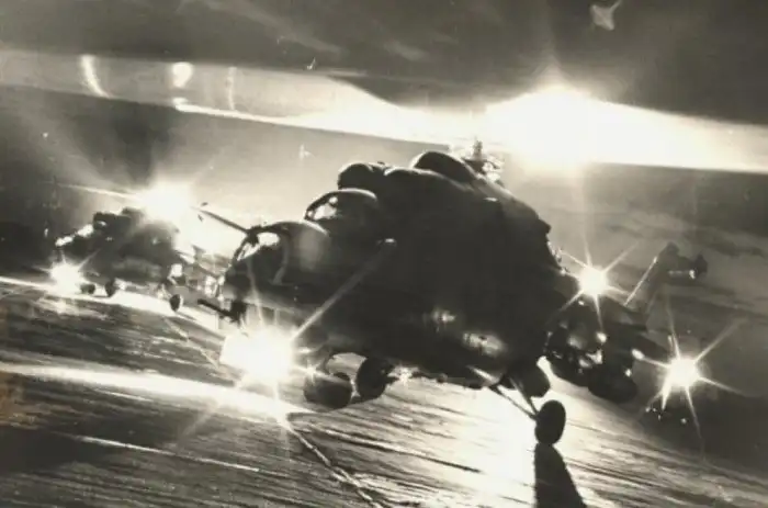 29. Советские вертолеты Ми-24 готовятся к взлету во время учений "Запад-84"