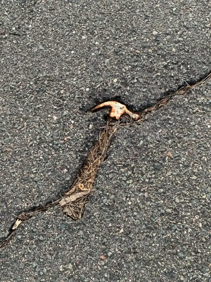17. Остатки молотка, застрявшего в асфальте
