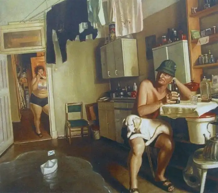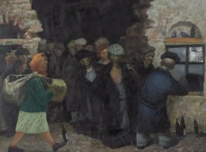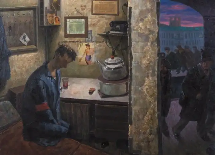 Страсть к рисованию кипела в художнике, поэтому после окончания военной службы, он решает не возвращаться в родное село, а переезжает в Москву. Небольшая съемная комната на Арбате становится не только жильем, но и мастерской, в которой рождаются картины, описывающие неприглядный быт людей той эпохи. Очереди за продуктами, общие бани, коммунальные квартиры и бесконечное пьянство – вот темы, которые раскрывал Колотев в своих полотнах.