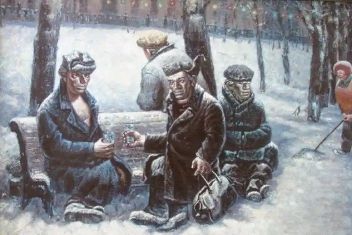 Василий Колотев никогда не ставил перед собой задачу коммерческого успеха. Он просто рисовал действительную жизнь большинства людей, ютившихся в коммуналках, стоящих в очередях за продуктами, не имеющих элементарных человеческих условий и заливающих свое существование водкой. Каждому советскому человеку среднего звена понятна и близка тема произведений Колотева. Такая жесткая правда никоим образом не должна была быть допущена в массы.