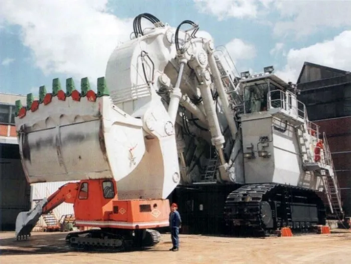 9. Мини экскаватор может поместиться в ковш супер экскаватора Тирекс