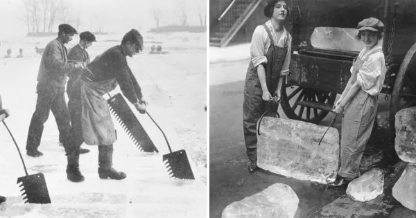Ранее лёд для пищевых нужд (хранение продуктов) нарезали и доставляли специально обученные люди.