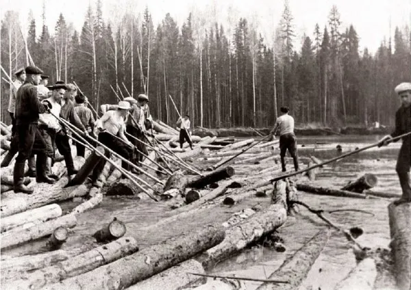 В XIX веке срубленные деревья сплавлялись до лесопилок по рекам. Доставить их в целости и сохранности помогали сплавщики. Они шли по берегу с длинными палками и направляли брёвна, а также убирали с их пути различные препятствия. К началу XX века профессия сошла на нет, так как появилась железная дорога и переносные лесопилки.