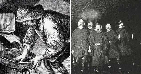 В викторианскую эпоху в Лондоне существовали люди, которых называли тошерами. Они зарабатывали на жизнь, взламывая городскую канализационную систему и разыскивая монеты, металлолом и другие ценны вещи. Тошеры ставились на один уровень с рабочим классом. Однако исследование канализации стало незаконным в 1840 году.