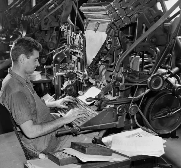 Наборщики текста, работавшие на специальных машинах — линотипах. Они предназначались для отливки строк текста из гарта (особого типографского сплава).