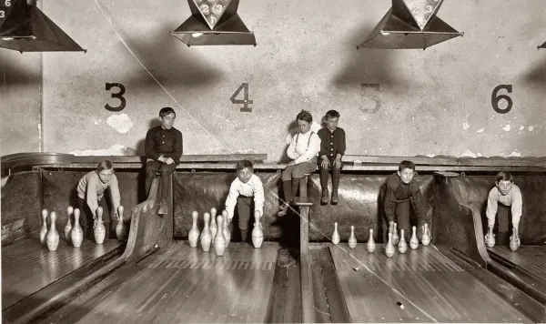До того, как в клубах для боулинга появились специальные устройства, которые расставляли кегли, этой работой занимались дети и подростки за довольно скромную плату.