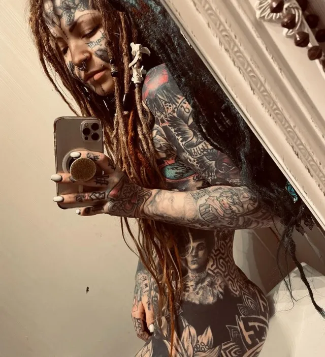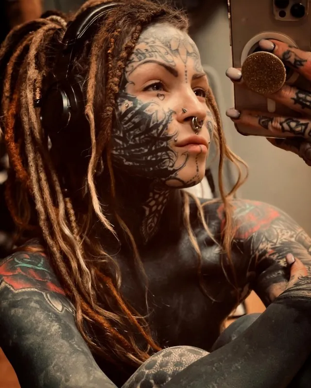 Александра Жасмин (Aleksandra Jasmin) — мама троих детей из Финляндии. Ее тело на 95% покрыто татуировками и она владеет собственным тату-салоном. Татуировки своим клиентам Александра делает "фрихендом", то есть без подготовки эскиза, нанося рисунок сразу на кожу. Результатами своих работ и собственными фотографиями девушка делится в соцсетях.