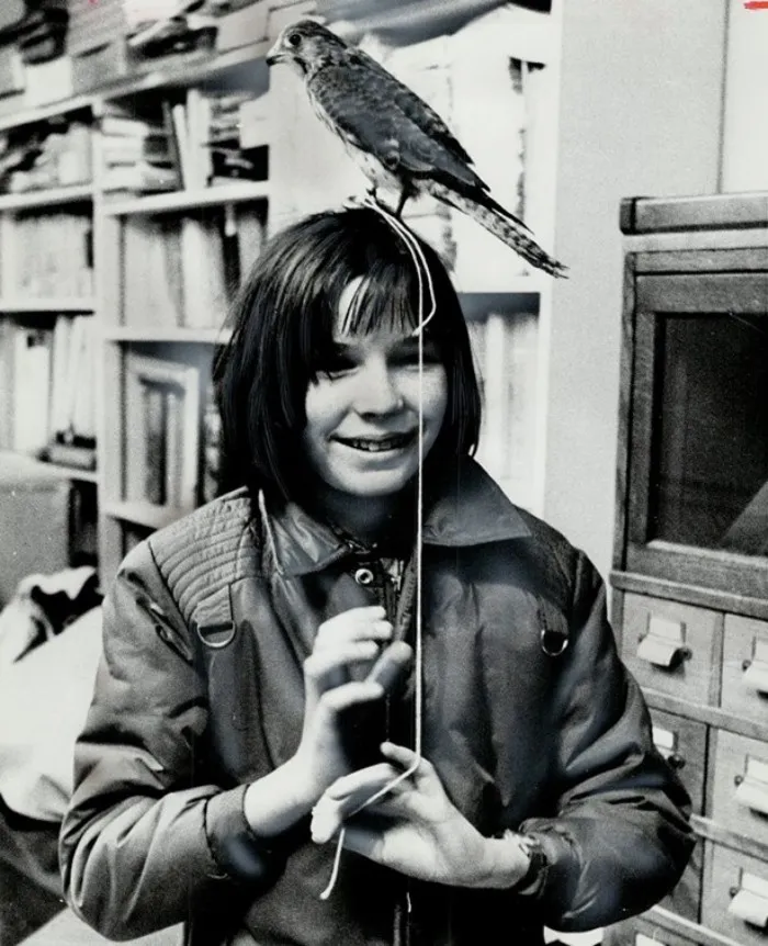 13 февраля 1973 года. Канада. Девочка и европейская пустельга. Фото Pat Brennan.