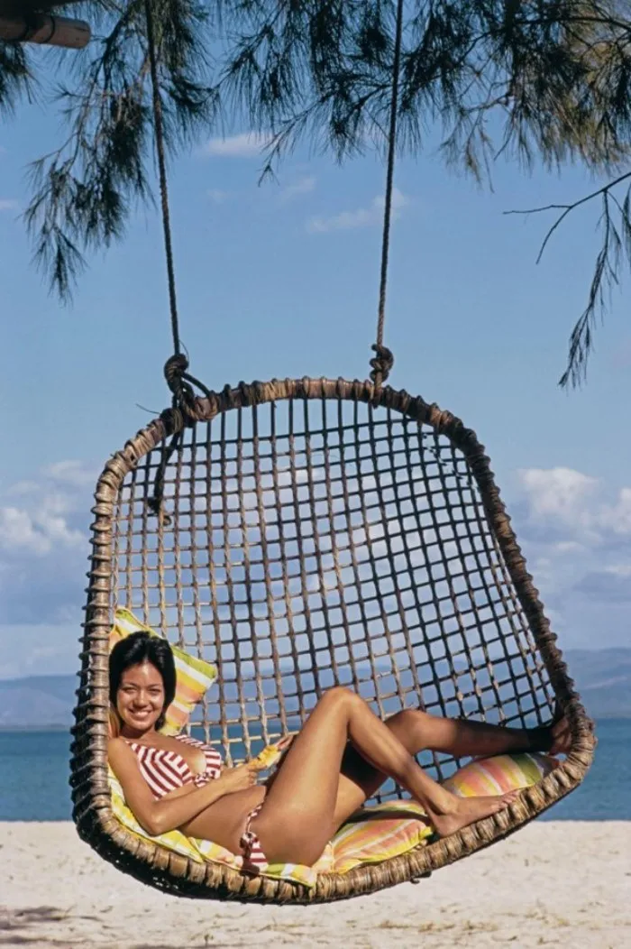 Февраль 1973 года. Филиппины. На пляже частного острова, принадлежащего президенту Philippine Airlines Бениньо Тода-младшему. Фото Slim Aarons