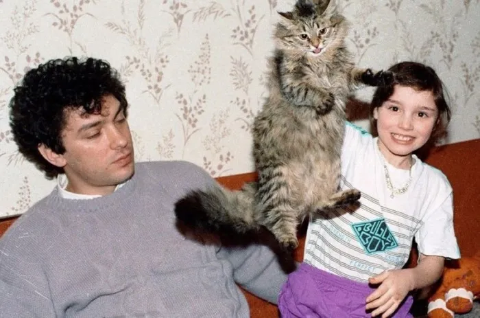 Борис Немцов с дочерью Жанной и котом, 1993 год