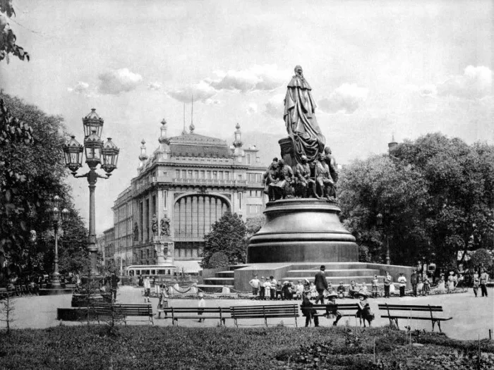 Памятник Императрице Екатерине II на площади Островского. Санкт-Петербург. Россия. Фото Карла Буллы. 1900-е