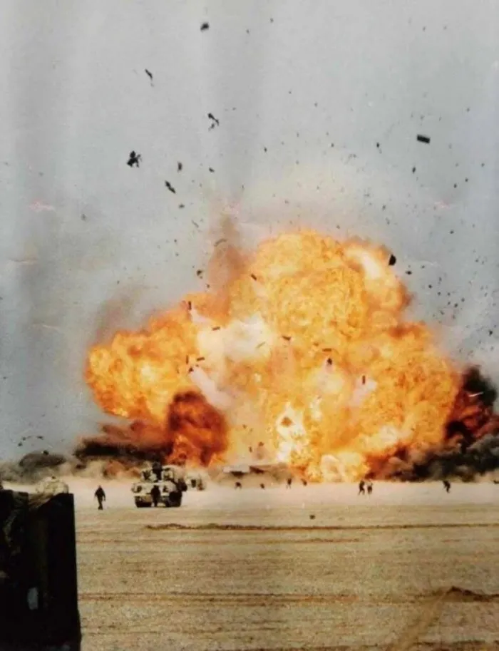 Взрыв британского инженерного танка "Центурион" AVRE с полным боекомплектом в результате несчастного случая. Персидский залив, февраль 1991 года