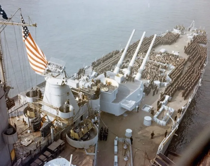 Церемония ввода в эксплуатацию USS Iowa, военно-морская верфь Нью-Йорка, Нью-Йорк, Соединенные Штаты, 22 февраля 1943 года