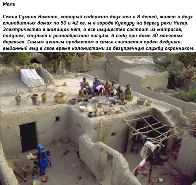 Около 20 лет назад, в начале 90-х, знаменитый американский фотограф Питер Менцель создал интереснейший фотопроект под названием "Материальный мир. Глобальный семейный портрет". В рамках этого проекта он исследовал жизнь среднестатистических семей в 30 разных странах мира. Познакомившись с членами семьи, фотограф просил их вынести на улицу все, что есть у них в доме, и назвать среди них вещи, которые они считают самыми ценными.