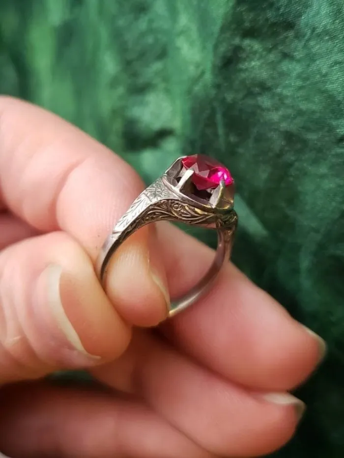 В кольце есть настоящие бриллианты и отличная винтажная, почти антикварная оправа.