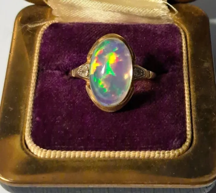 Приобрела на барахолке в прошлые выходные. Здесь 10-каратное золото и натуральный опал