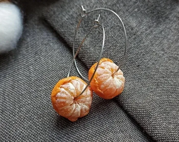 3. Невероятно реалистичные серьги-мандаринки из полимерной глины
