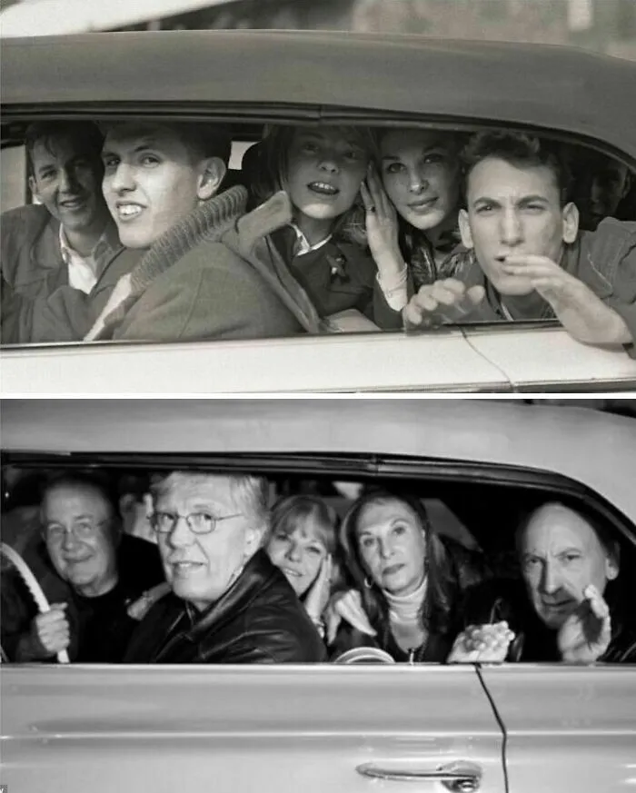 7. Поклонники Beatles в 1964 и 2013 годах. Верхнее фото школьников, прогулявших занятия ради первого тура группы в США, сделал сам Ринго Старр