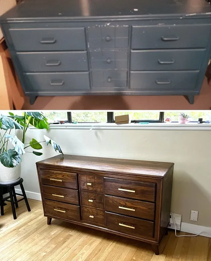 19. «Увидел этот комод на распродаже за 30 долларов и понял, что под слоем краски скрывается что-то удивительное. Это мой первый опыт реставрации мебели, но я доволен результатом»