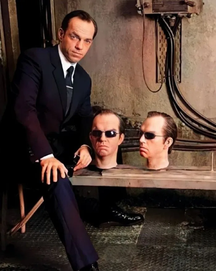 7. Хьюго Уоллес Уивинг, он же агент Смит, на съёмках фильма «Матрица», 1999 год