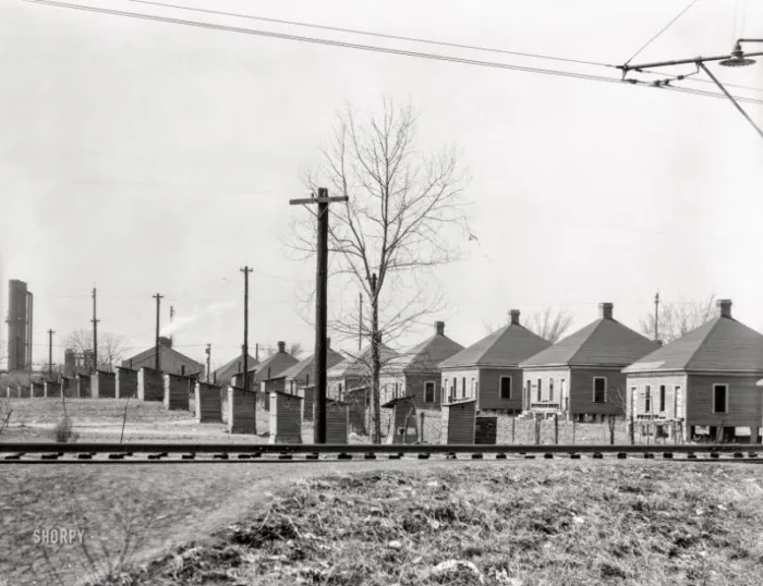 14. Дома рабочих сталелитейного завода, принадлежащие компании. Окрестности Бирмингaма, штат Алабама. США. Март 1936 года. (Photo credit: Shorpy)