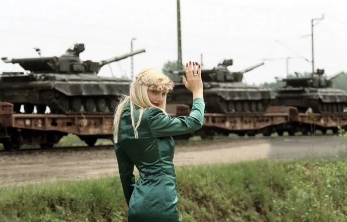 23. Итало-венгерская порно актриса и итальянский политик Чиччолина провожает советские танки Южной группы войск (ЮГВ), покидающих Будапешт. Венгрия. 1990 год