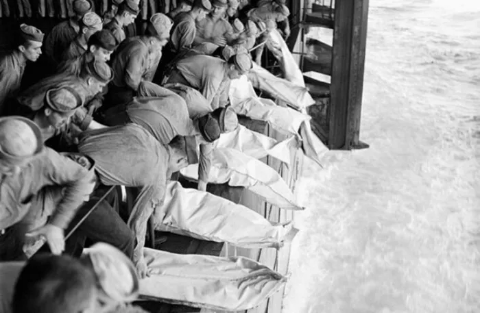 27. Похороны офицеров и матросов американского авианосца "Intrepid" 26 ноября 1944 года