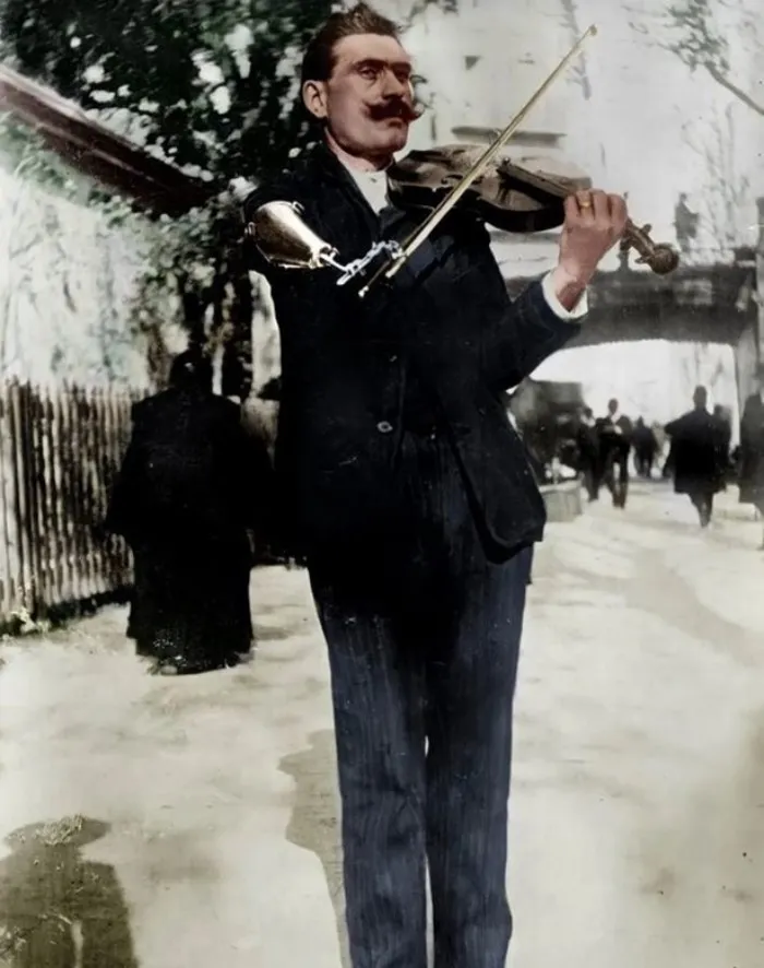 31. Ветеран Первой мировой войны играет на скрипке с протезом руки, около 1919 года