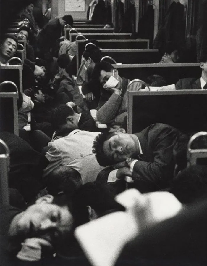 39. Ранняя поездка в пригородном поезде в Японии, около 1964 года