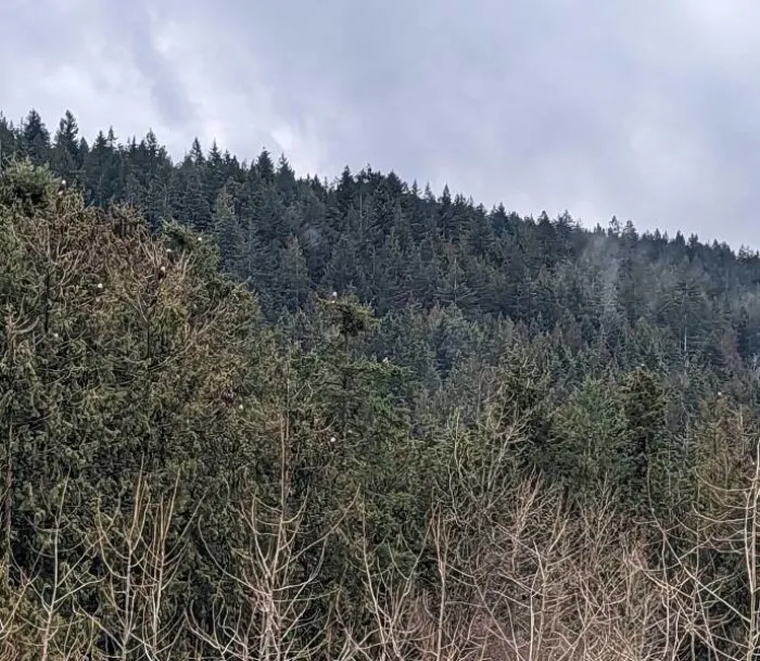 20. "Белые точки среди деревьев — это белоголовые орланы"